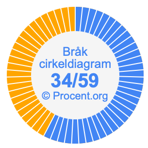 Dessutom kommer vi också att illustrera bråket 34/59 i ett cirkeldiagram och 34/59 som procent i ett cirkeldiagram.