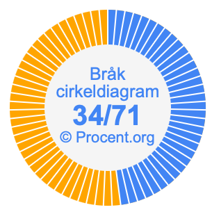 Dessutom kommer vi också att illustrera bråket 34/71 i ett cirkeldiagram och 34/71 som procent i ett cirkeldiagram.