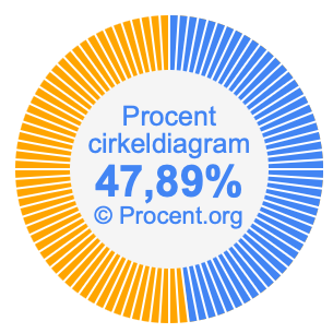Illustrationerna nedan visar hur 34/71 och 47,89% delar upp ett cirkeldiagram olika men täcker samma område eftersom de är desamma.