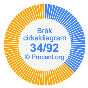 Dessutom kommer vi också att illustrera bråket 34/92 i ett cirkeldiagram och 34/92 som procent i ett cirkeldiagram.
