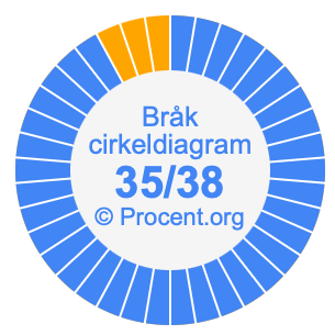 Dessutom kommer vi också att illustrera bråket 35/38 i ett cirkeldiagram och 35/38 som procent i ett cirkeldiagram.
