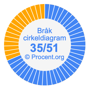 Illustrationerna nedan visar hur 35/51 och 68,63% delar upp ett cirkeldiagram olika men täcker samma område eftersom de är desamma.