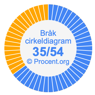 Illustrationerna nedan visar hur 35/54 och 64,81% delar upp ett cirkeldiagram olika men täcker samma område eftersom de är desamma.