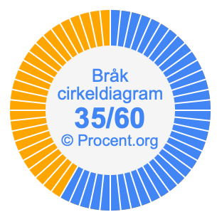 Illustrationerna nedan visar hur 35/60 och 58,33% delar upp ett cirkeldiagram olika men täcker samma område eftersom de är desamma.