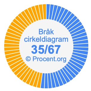 Illustrationerna nedan visar hur 35/67 och 52,24% delar upp ett cirkeldiagram olika men täcker samma område eftersom de är desamma.