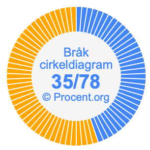 Illustrationerna nedan visar hur 35/78 och 44,87% delar upp ett cirkeldiagram olika men täcker samma område eftersom de är desamma.