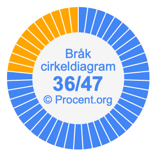 Illustrationerna nedan visar hur 36/47 och 76,6% delar upp ett cirkeldiagram olika men täcker samma område eftersom de är desamma.