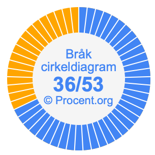 Dessutom kommer vi också att illustrera bråket 36/53 i ett cirkeldiagram och 36/53 som procent i ett cirkeldiagram.