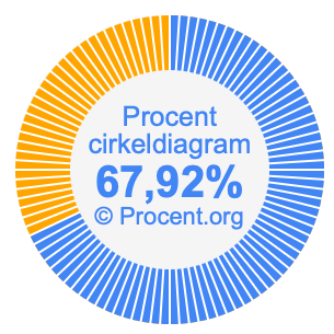 Illustrationerna nedan visar hur 36/53 och 67,92% delar upp ett cirkeldiagram olika men täcker samma område eftersom de är desamma.