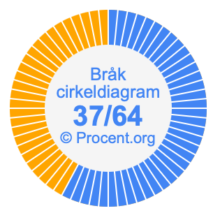 Dessutom kommer vi också att illustrera bråket 37/64 i ett cirkeldiagram och 37/64 som procent i ett cirkeldiagram.