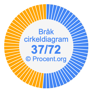 Dessutom kommer vi också att illustrera bråket 37/72 i ett cirkeldiagram och 37/72 som procent i ett cirkeldiagram.