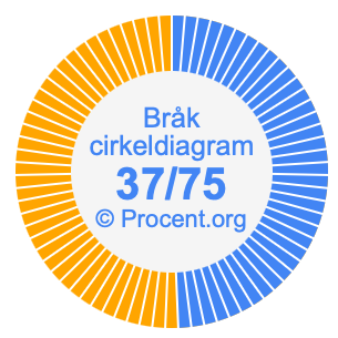 Dessutom kommer vi också att illustrera bråket 37/75 i ett cirkeldiagram och 37/75 som procent i ett cirkeldiagram.