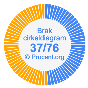 Dessutom kommer vi också att illustrera bråket 37/76 i ett cirkeldiagram och 37/76 som procent i ett cirkeldiagram.