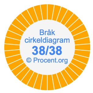 Dessutom kommer vi också att illustrera bråket 38/38 i ett cirkeldiagram och 38/38 som procent i ett cirkeldiagram.