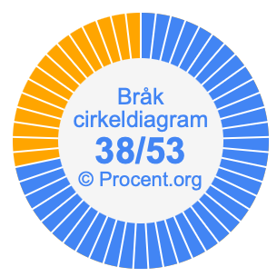 Illustrationerna nedan visar hur 38/53 och 71,7% delar upp ett cirkeldiagram olika men täcker samma område eftersom de är desamma.