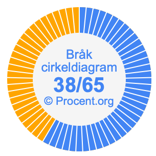Dessutom kommer vi också att illustrera bråket 38/65 i ett cirkeldiagram och 38/65 som procent i ett cirkeldiagram.