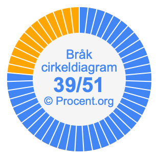 Illustrationerna nedan visar hur 39/51 och 76,47% delar upp ett cirkeldiagram olika men täcker samma område eftersom de är desamma.