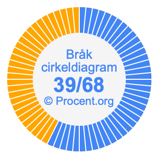 Illustrationerna nedan visar hur 39/68 och 57,35% delar upp ett cirkeldiagram olika men täcker samma område eftersom de är desamma.