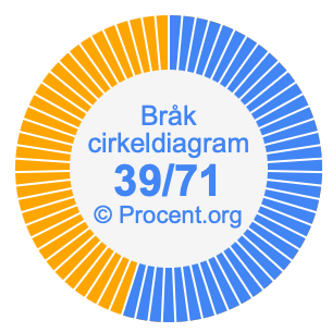 Dessutom kommer vi också att illustrera bråket 39/71 i ett cirkeldiagram och 39/71 som procent i ett cirkeldiagram.