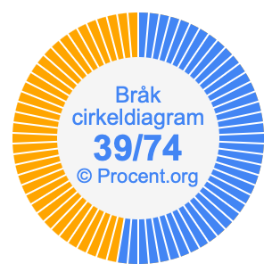 Illustrationerna nedan visar hur 39/74 och 52,7% delar upp ett cirkeldiagram olika men täcker samma område eftersom de är desamma.