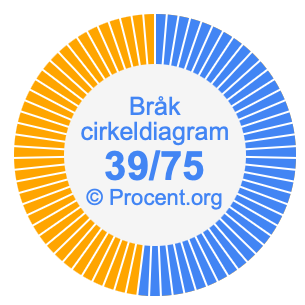 Dessutom kommer vi också att illustrera bråket 39/75 i ett cirkeldiagram och 39/75 som procent i ett cirkeldiagram.