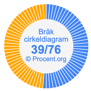Illustrationerna nedan visar hur 39/76 och 51,32% delar upp ett cirkeldiagram olika men täcker samma område eftersom de är desamma.