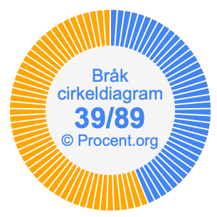 Dessutom kommer vi också att illustrera bråket 39/89 i ett cirkeldiagram och 39/89 som procent i ett cirkeldiagram.