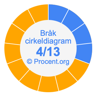 Illustrationerna nedan visar hur 4/13 och 30,77% delar upp ett cirkeldiagram olika men täcker samma område eftersom de är desamma.