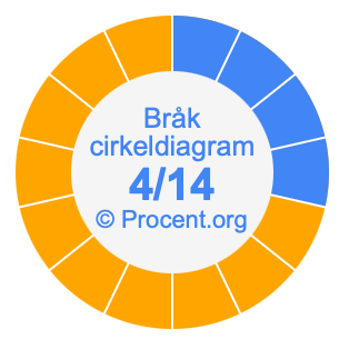 Dessutom kommer vi också att illustrera bråket 4/14 i ett cirkeldiagram och 4/14 som procent i ett cirkeldiagram.