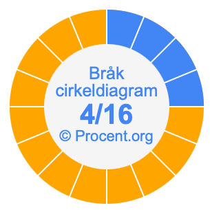 Illustrationerna nedan visar hur 4/16 och 25% delar upp ett cirkeldiagram olika men täcker samma område eftersom de är desamma.