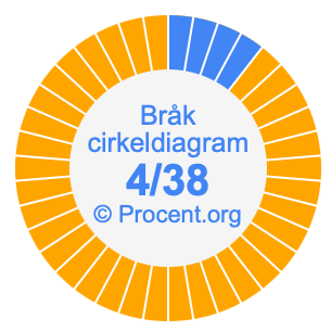 Dessutom kommer vi också att illustrera bråket 4/38 i ett cirkeldiagram och 4/38 som procent i ett cirkeldiagram.