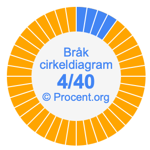 Dessutom kommer vi också att illustrera bråket 4/40 i ett cirkeldiagram och 4/40 som procent i ett cirkeldiagram.