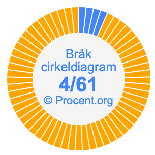 Dessutom kommer vi också att illustrera bråket 4/61 i ett cirkeldiagram och 4/61 som procent i ett cirkeldiagram.