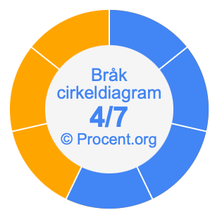 Illustrationerna nedan visar hur 4/7 och 57,14% delar upp ett cirkeldiagram olika men täcker samma område eftersom de är desamma.