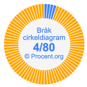 Dessutom kommer vi också att illustrera bråket 4/80 i ett cirkeldiagram och 4/80 som procent i ett cirkeldiagram.