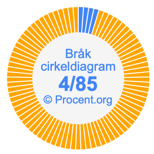 Dessutom kommer vi också att illustrera bråket 4/85 i ett cirkeldiagram och 4/85 som procent i ett cirkeldiagram.