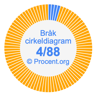 Dessutom kommer vi också att illustrera bråket 4/88 i ett cirkeldiagram och 4/88 som procent i ett cirkeldiagram.