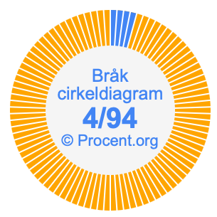 Dessutom kommer vi också att illustrera bråket 4/94 i ett cirkeldiagram och 4/94 som procent i ett cirkeldiagram.