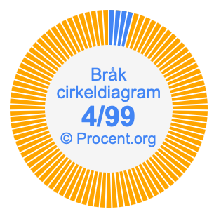 Dessutom kommer vi också att illustrera bråket 4/99 i ett cirkeldiagram och 4/99 som procent i ett cirkeldiagram.