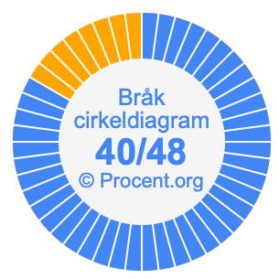 Illustrationerna nedan visar hur 40/48 och 83,33% delar upp ett cirkeldiagram olika men täcker samma område eftersom de är desamma.