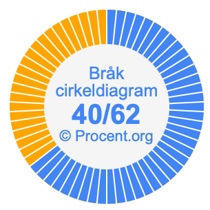 Illustrationerna nedan visar hur 40/62 och 64,52% delar upp ett cirkeldiagram olika men täcker samma område eftersom de är desamma.