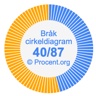 Dessutom kommer vi också att illustrera bråket 40/87 i ett cirkeldiagram och 40/87 som procent i ett cirkeldiagram.