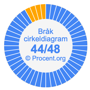 Illustrationerna nedan visar hur 44/48 och 91,67% delar upp ett cirkeldiagram olika men täcker samma område eftersom de är desamma.