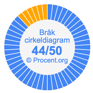44/50 är ett bråk som betyder 44 av 50, och procent betyder något av 100. Vi kan därför göra följande ekvation för att få 44/50 som procent: