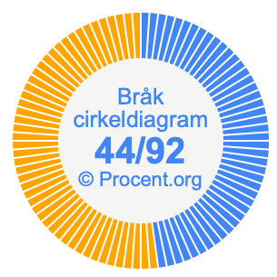 Dessutom kommer vi också att illustrera bråket 44/92 i ett cirkeldiagram och 44/92 som procent i ett cirkeldiagram.