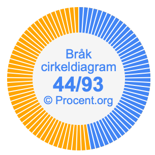 Dessutom kommer vi också att illustrera bråket 44/93 i ett cirkeldiagram och 44/93 som procent i ett cirkeldiagram.