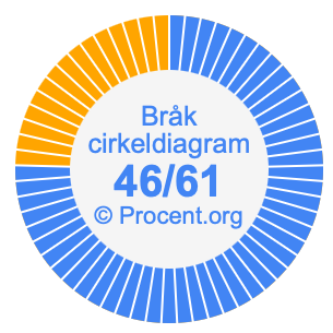 Dessutom kommer vi också att illustrera bråket 46/61 i ett cirkeldiagram och 46/61 som procent i ett cirkeldiagram.