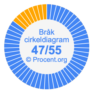 Dessutom kommer vi också att illustrera bråket 47/55 i ett cirkeldiagram och 47/55 som procent i ett cirkeldiagram.