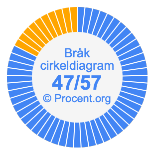 Illustrationerna nedan visar hur 47/57 och 82,46% delar upp ett cirkeldiagram olika men täcker samma område eftersom de är desamma.
