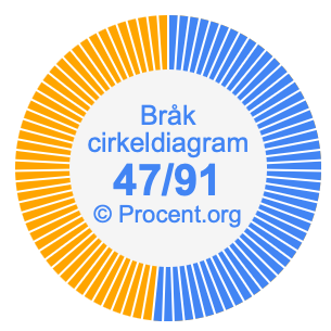 Dessutom kommer vi också att illustrera bråket 47/91 i ett cirkeldiagram och 47/91 som procent i ett cirkeldiagram.